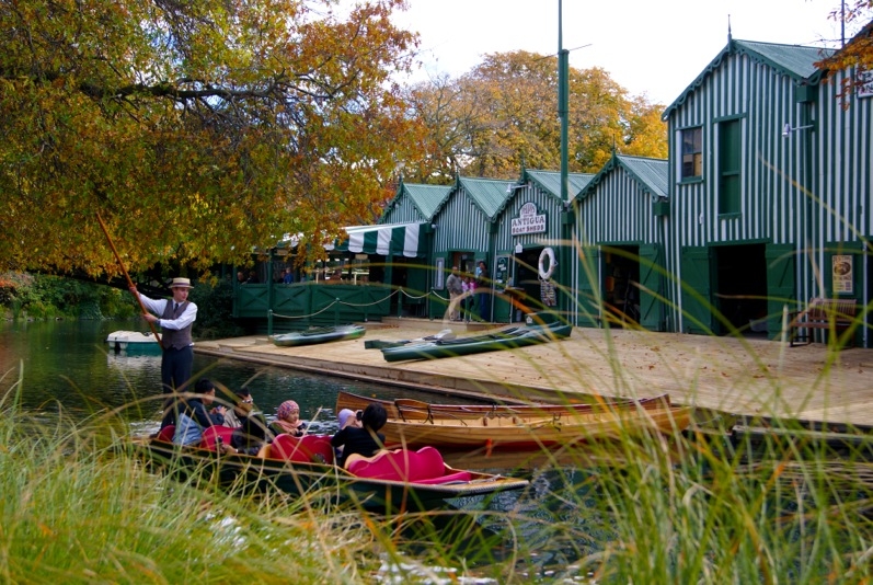 Asian visitors punting on Avon
